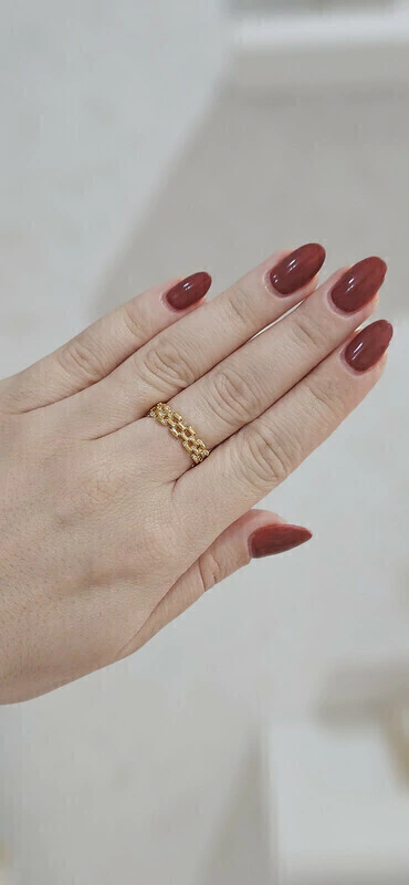 Com design moderno e elegante, o anel quadriculado cravejado com pedras de zircônia traz um toque sofisticado e cheio de brilho. O banho em ouro 18k valoriza cada detalhe da peça, tornando-a perfeita para complementar looks sofisticados e estilosos.