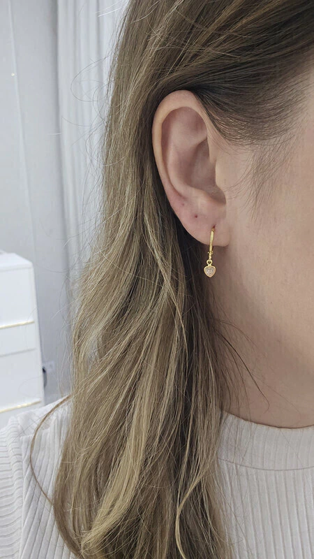 Argolinha com fecho em clic com pingente no formato de coração com zircônia cristal no banho de ouro 18k proporciona um look clássico e estiloso.