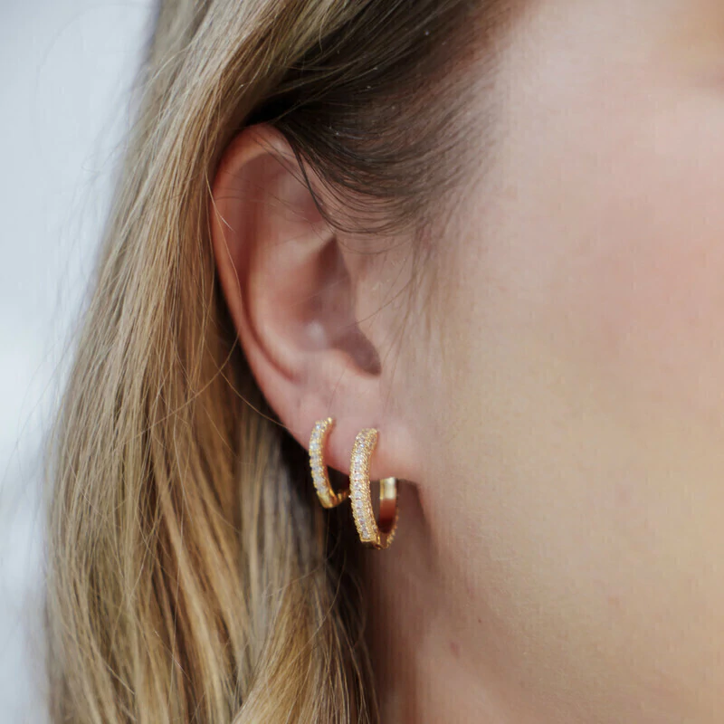 Realce seu estilo com a elegante Argolinha V Cravejada 1 Fileira M Banho Ouro 18k. Com um design sofisticado e um toque de brilho, esta peça é perfeita para quem busca um acessório moderno e luxuoso que complementa qualquer look.