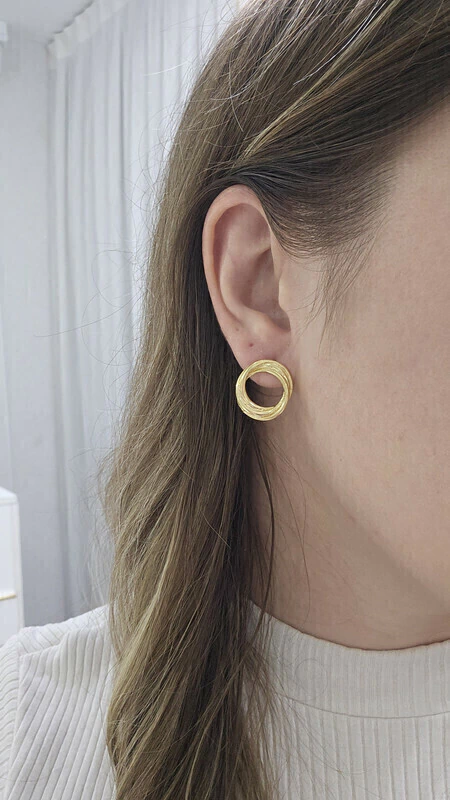 Brinco Entrelaçado Vazado Banho Ouro 18k