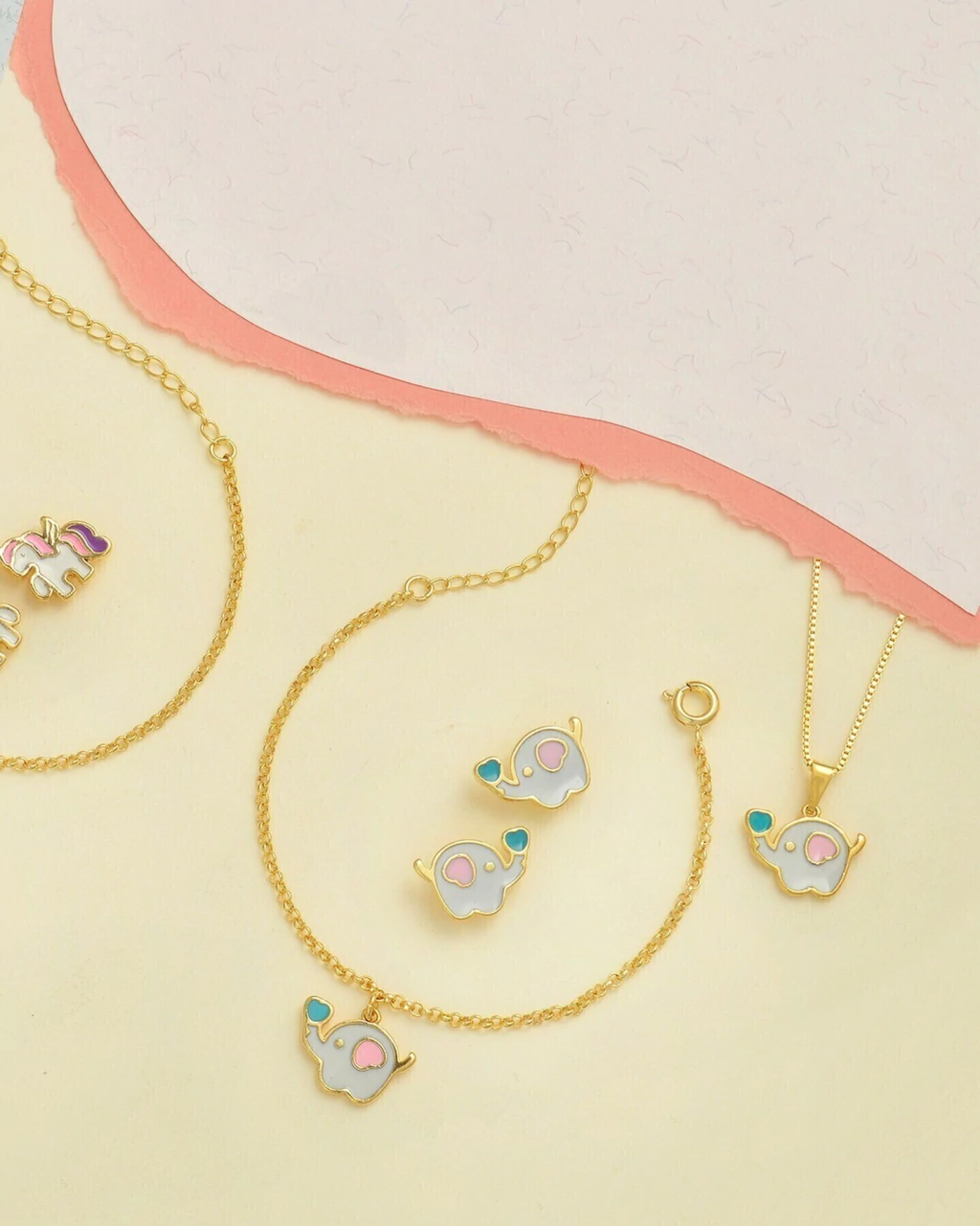 Delicado e cheio de fofura, o brinco infantil elefante com banho em ouro 18k é perfeito para as pequenas que amam acessórios divertidos e especiais. Seu design encantador traz um toque lúdico ao visual infantil, sem abrir mão da qualidade e segurança.