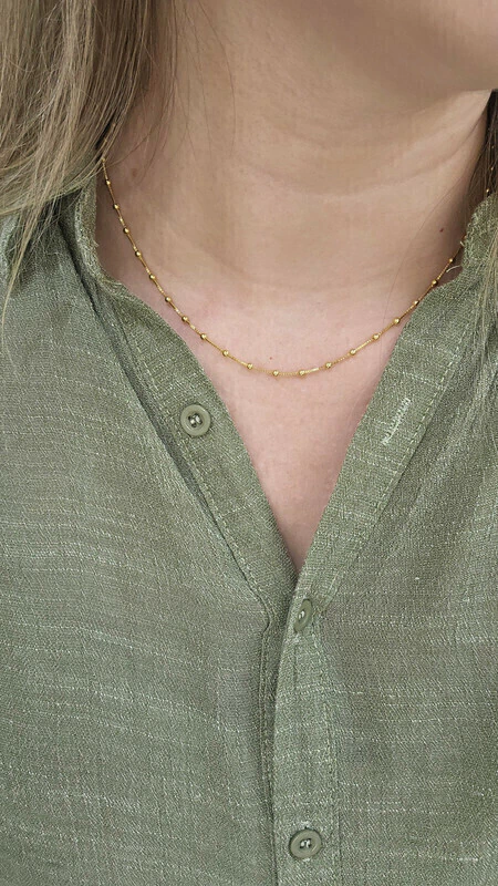 Minimalista e versátil, a choker mini bolinhas com banho em ouro 18k é uma peça curinga para qualquer ocasião. Seu design delicado com pequenas esferas douradas oferece um brilho discreto, ideal para ser usada sozinha ou compondo mix de colares com muito estilo.