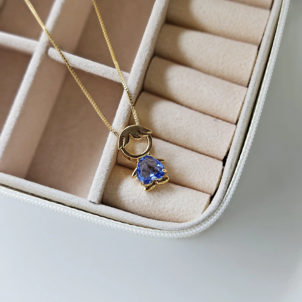 Colar com pingente de menino com zircônia azul dão o charme desta semijoia.