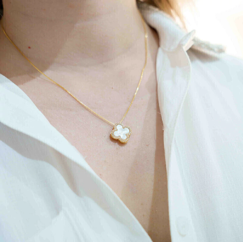 Ideal para presentear alguém especial ou para se mimar com um acessório luxuoso e significativo, o Colar Trevo Madrepérola Banho Ouro 18k é uma peça indispensável em qualquer porta-joias.