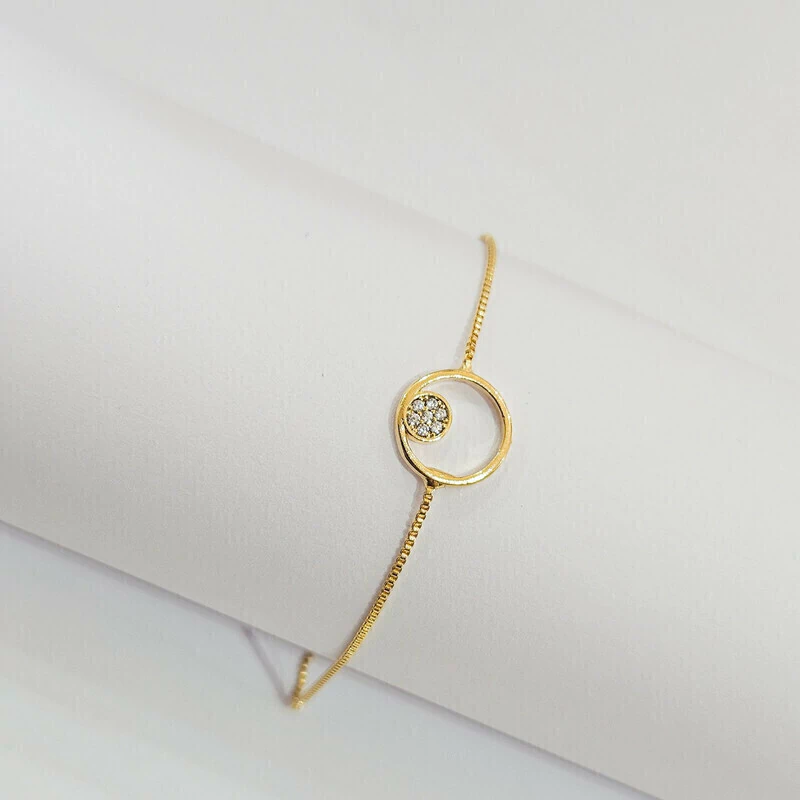 Exiba seu estilo radiante com a Pulseira Pulseira Círculo Vazado Cravejado Banho Ouro 18k.
