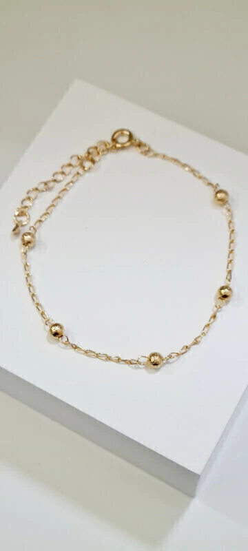 Com um acabamento moderno e sofisticado, a pulseira Esferas Foscas traz um toque de elegância discreta para qualquer produção. Seu banho em ouro 18k valoriza o design fosco das esferas, tornando essa peça perfeita para quem busca estilo com leveza e personalidade.