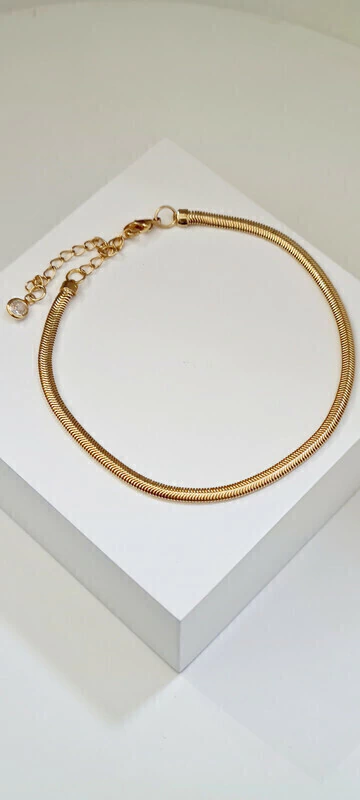 Minimalista e cheia de charme, a pulseira Fio Alemão traz sofisticação na medida certa. Seu design liso e elegante valoriza o brilho do banho ouro 18k, sendo perfeita para compor mix de pulseiras ou usar sozinha em uma proposta mais clean.
